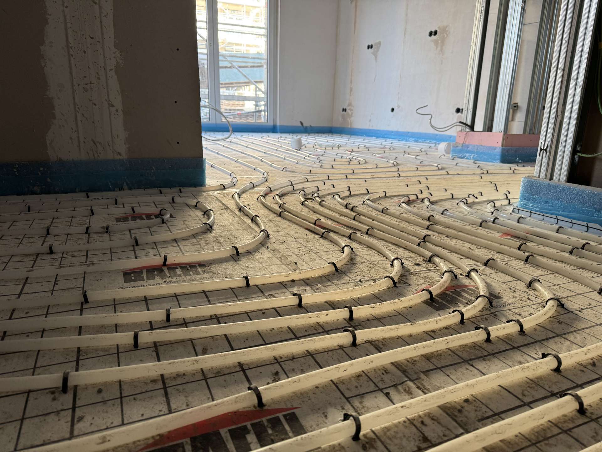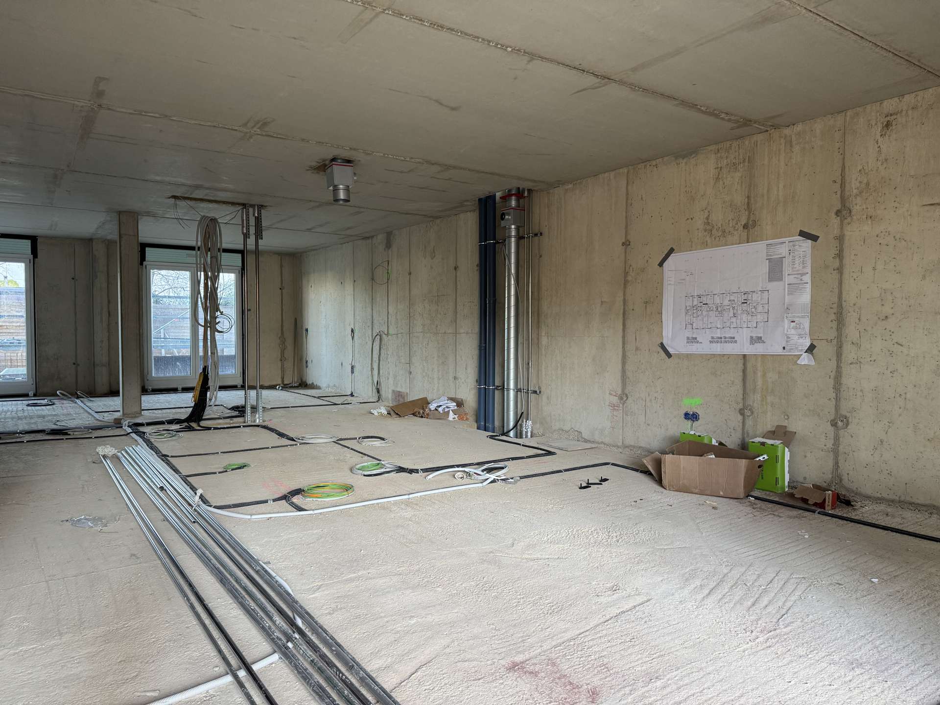 Parallel zum Abschluss des Rohbaus haben bereits die Ausbaugewerke ihre Arbeit aufgenommen. Die Rohinstallationen für Elektro, Heizung, Lüftung und Sanitär sind angelaufen und markieren den Übergang vom konstruktiven Bau zur technischen und gestalterischen Ausarbeitung der Gebäude. In den meisten Wohnungen wurden zudem bereits die Fenster eingesetzt. Bis Weihnachten werden alle drei Häuser vollständig verglast sein – ein weiterer Schritt hin zu geschlossenen, wetterfesten Gebäuden.