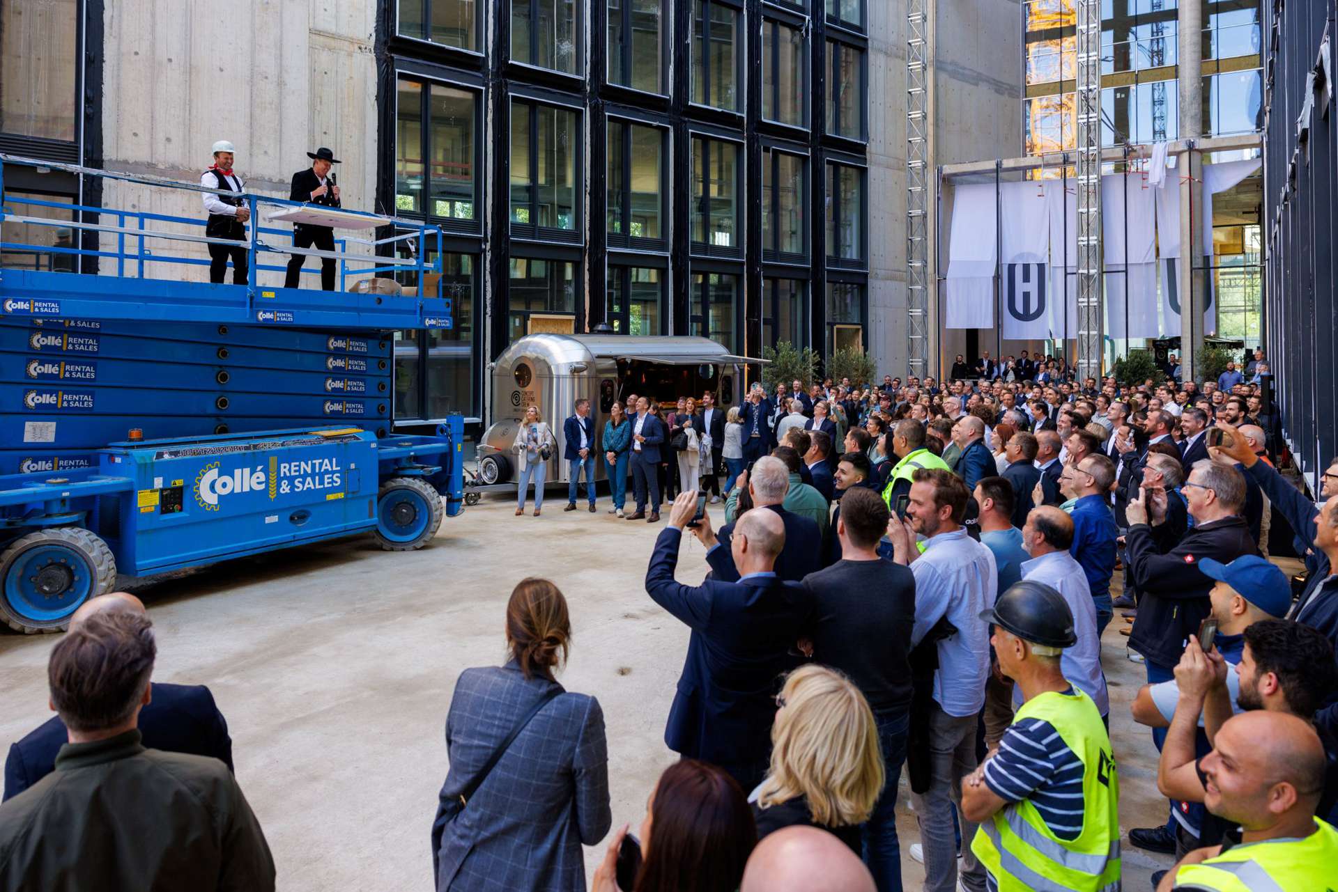 Düsseldorfs Oberbürgermeister Dr. Stephan Keller eröffnete die Feier mit einem Grußwort zur städtebaulichen Bedeutung des Quartiers. Anschließend diskutierten Vertreter*innen von PANDION, der Stadt Düsseldorf, dem künftigen Großmieter EY und den Architekten über die Chancen der Projekte für die Landeshauptstadt. Der traditionelle Richtspruch und das Heben des Richtkranzes rundeten das Richtfest im Innenhof ab, bevor der Abend bei Livemusik und rheinischen Spezialitäten ausklang.