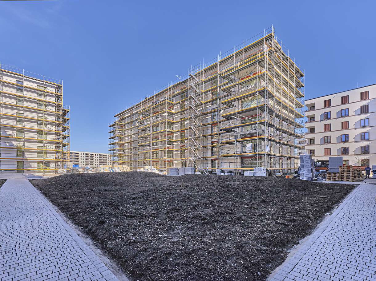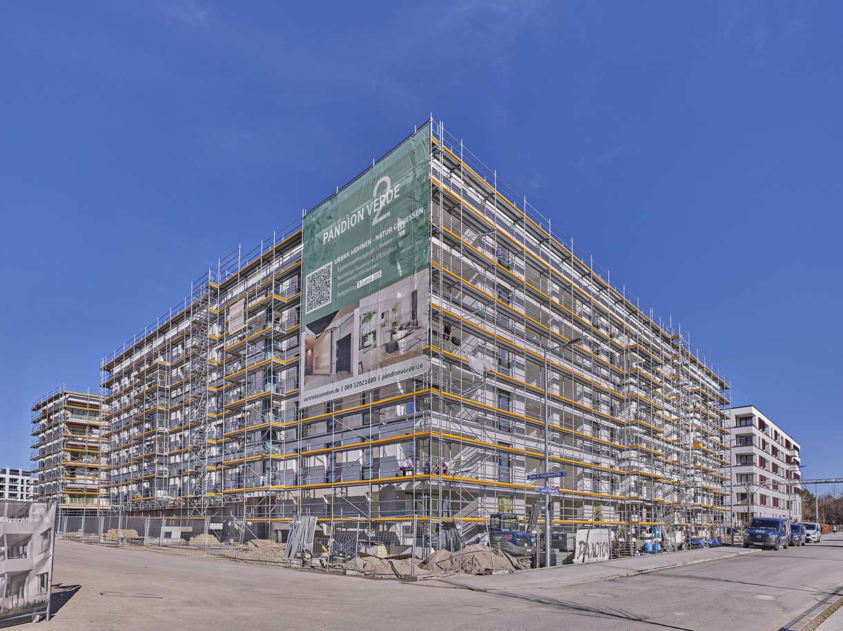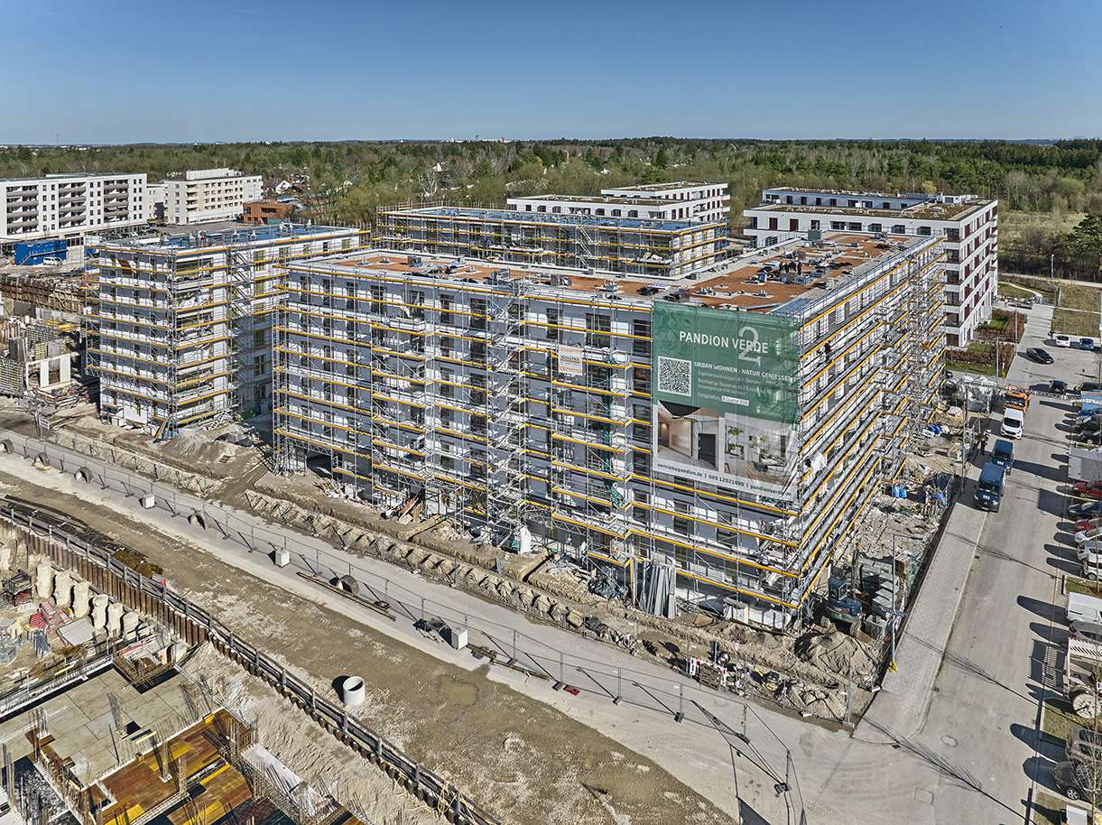 Wir haben unseren Lieblingsfotografen losgeschickt, um ein paar neue Bilder vom unserem Wohnprojekt PANDION VERDE2 aufzunehmen. Bei Frühlingssonne und mit bayerisch-blauem Himmel konnte er den geschäftigen Betrieb auf der Baustelle einfangen und zeigen, wie das zukünftige Zuhause unserer Käufer*innen immer konkretere Formen annimmt. Der Bau schreitet sichtbar voran und schon heute lässt sich erkennen, welche Qualität und Wohnatmosphäre man hier erwarten darf.